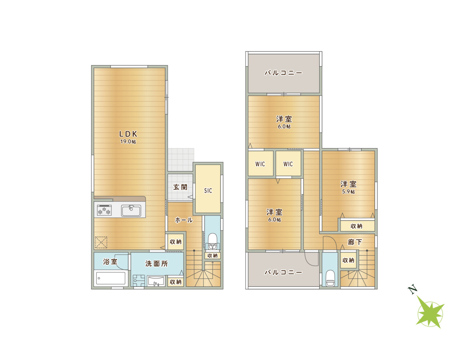 | 土地面積 | 94.㎡[約28.56坪]~63.42㎡[約19.18坪] |